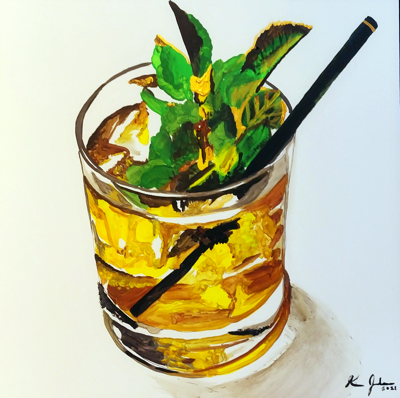 A reflective still-life painting that explores the signature Mint Julep cocktail created during Bourbon Heritage Month on the Urban Bourbon Trail.
